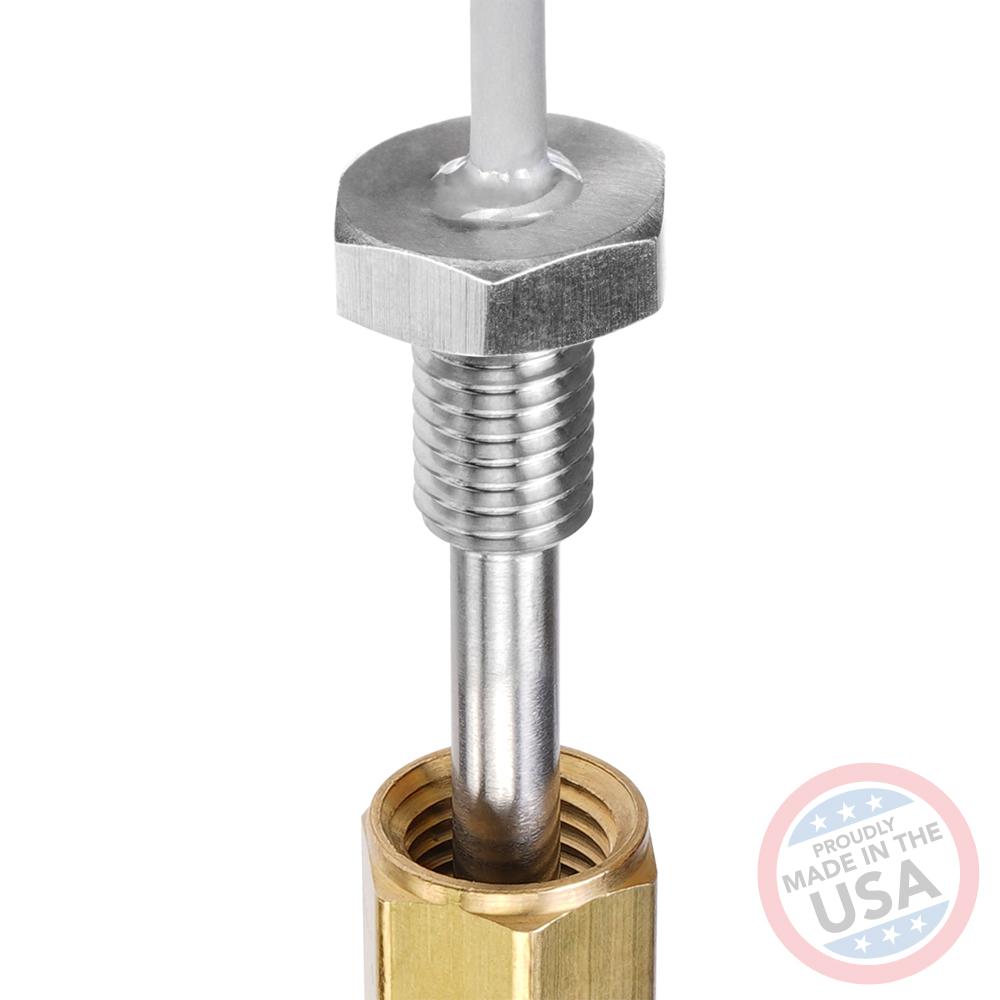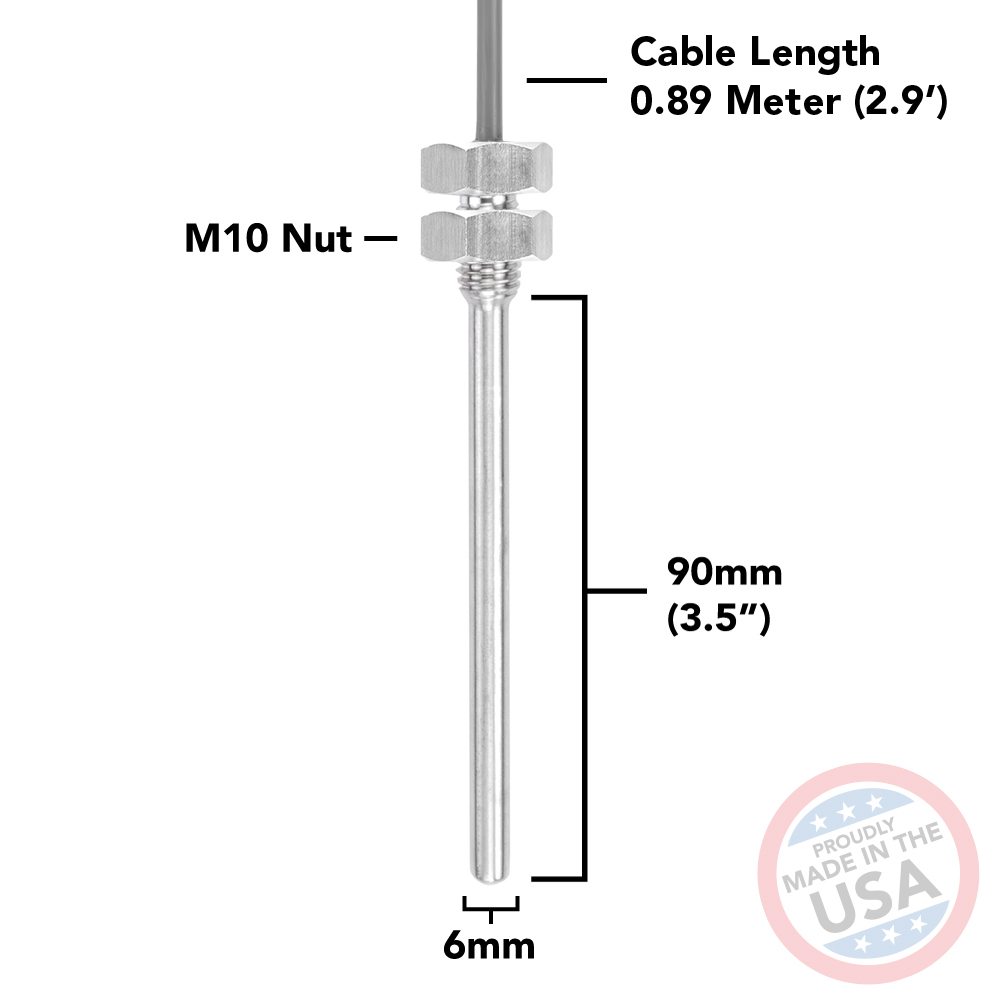 The Atlas Scientific Threaded Temperature probe is a Class-B platinum RTD temperature probe. This probe has M10 thread and is designed to be mounted into a tank. The 304 stainless steel body quickly conducts heat from the environment to the platinum sensor inside, giving you low latency, high accuracy readings.